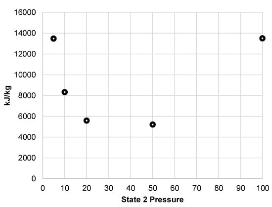 Compressor work for pre-cooled Linde subsystem with varying state 2 pressures.