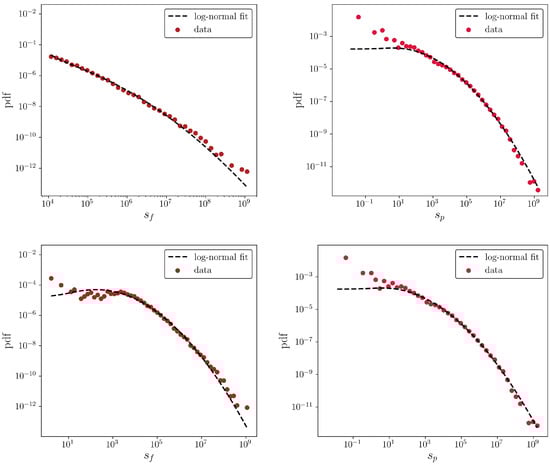 Let us start by describing some empirical findings about the system under analysis, concerning the distribution of firms and products strengths. As Figure 2 shows, both distributions seem to be well fitted by a log-normal (as confirmed by a Kolmogorov-Smirnov (KS) test that does not reject such an hypothesis) in agreement with the the evidence for the monopartite WTW [30] and also at the firm level [31,32].