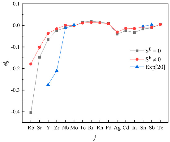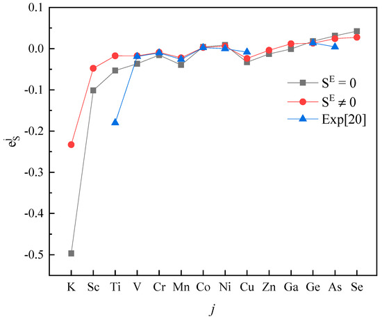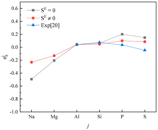 (2) The calculated results for e S j in Fe-based melts (Fe-S-j) by current model at 1873 K, with or without considering the excess entropy, show that better results would be obtained with considering the excess entropy. And better results would be obtained for the elements j located in the middle of periodic table nearby the Fe group.