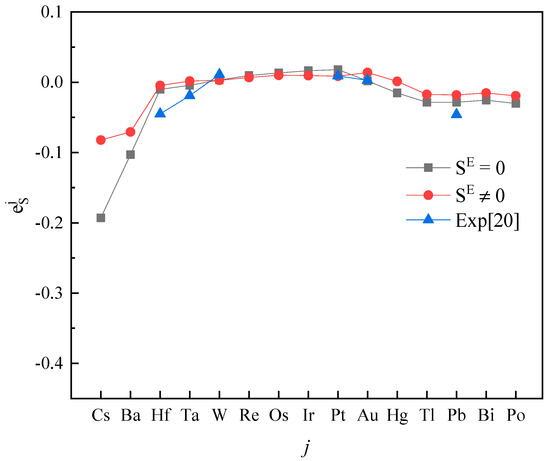 The Miedema parameters [19] of O, S, Se, Te, and Po required in the calculation of e i j are listed in Table 1. The rule for selecting the asymmetric component is according to the criterion described in [27]. The temperature for the calculations of e i j is 1873 K, and calculations are performed with (SE ≠ 0, case 1) or without considering (SE = 0, case 2) the excess entropy. When SE = 0, the αij is equal to 1, else it is identical to Equation (5). The calculated results and experimental values recommended by JSPS [20] are listed in Table 2.