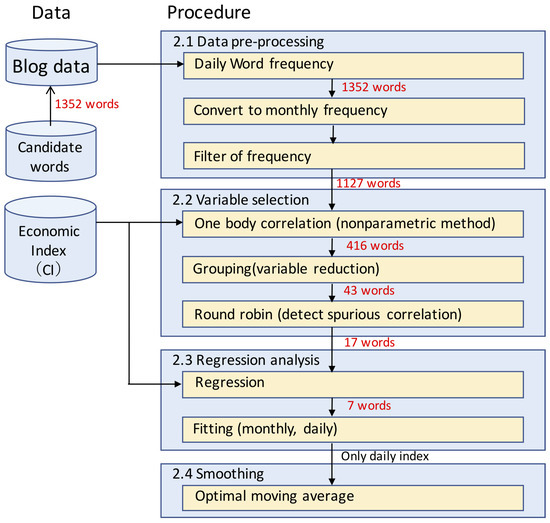 Flowchart of estimating an economic index from many word frequencies based on comprehensive search.