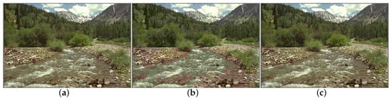 One natural image (“stream”) and two of its JPEG-compressed versions in the LIVE database: (a) image with DMOS = 0; (b) image with DMOS = 63.649; and (c) image with DMOS = 29.739.