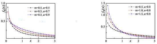 where a and m are the shape parameter and the scale parameter. The family of Weibull distributions includes the Exponential distribution  and Rayleigh distribution . When ,  approaches infinity as x approaches zero. The characteristic can be used to describe the pulse-shape phenomenon for the distribution of AC coefficients. Figure 3 shows the change of Weibull distribution in different parameter settings. When m is fixed and a is less than 1, a larger shape parameter a corresponds to a slower change of . When a is fixed, a larger scale parameter m corresponds to a faster change of .