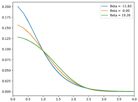 These equilibrium states are axisymmetric, stable, macrovortices with radially decreasing vorticity. For they are Gaussian densities, while for they are less concentrated, and for they are more concentrated at the origin than a Gaussian. Figure 1 displays three representative radial profiles of the vorticity .