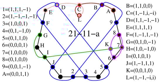 Below, we present a possible implementation of a KS critical 21-11 with complex coordinatization shown in Figure A1.