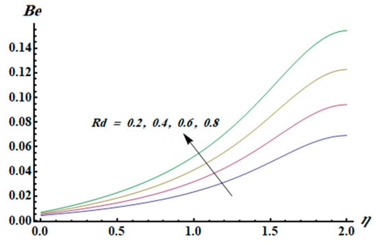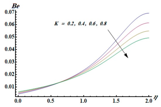 An important Bejan number defined by the ratio of entropy generation due to thermal effect and total entropy generated by thermal, concentration, and fluid frictions forces was as follows []: