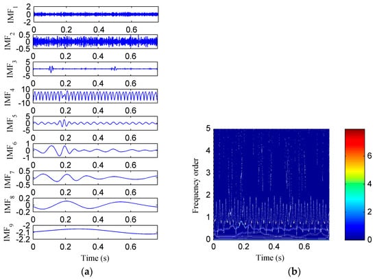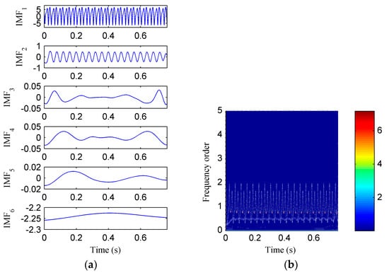 (a) The decomposed sub-components of the mixed signal using EMD; (b) the corresponding HHT time–frequency spectrum.
