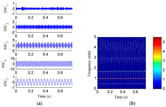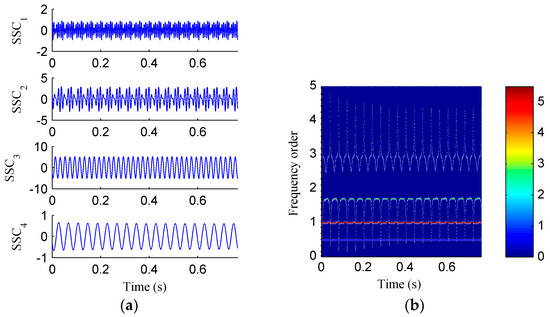 (a) The decomposed sub-components using SSD; (b) the corresponding SSD-HT time–frequency spectrum.