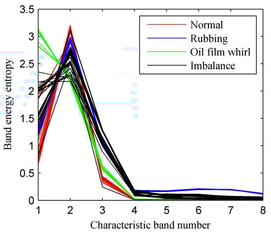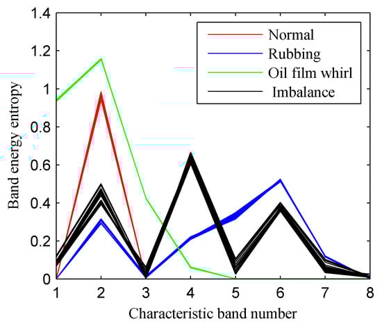 The characteristic frequency band energy entropy of the four rotor states obtained using the proposed method.
