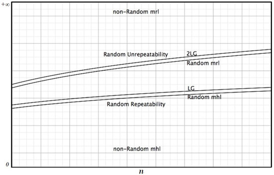 Our analysis shows that in random strings, there are two bounds given by and (Figure 1). Under the first one, we have only repeatable sub-strings, while over the second one, we have only unrepeatable sub-strings. The agreement with these conditions and the degrees of deviance from them give an indication about the randomness degree of a given string.