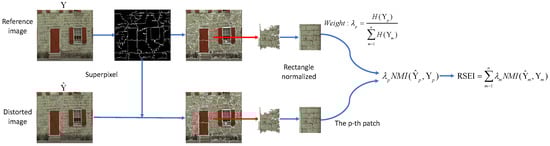 RSEI is illustrated in Figure 1. Reference image Y is divided into n image patches by semantic segmentation []. The corresponding segmentation label is recorded as . The resulting distorted image is divided by label .