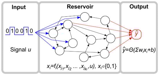 - Snyder, D.; Goudarzi, A.; Teuscher, C. Finding optimal random boolean networks for reservoir computing. In Proceedings of the Thirteenth International Conference on the Simulation and Synthesis of Living Systems (Alife’13), East Lansing, MI, USA, 19–22 July 2012. [Google Scholar]