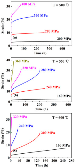 - Raj, S.V. Power-law and exponential creep in class M materials: Discrepancies in experimental observations and implications for creep modeling. Mater. Sci. Eng. A 2002, 322, 132–147. [Google Scholar] [CrossRef]