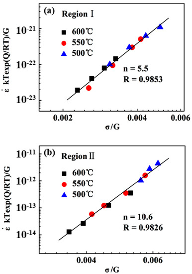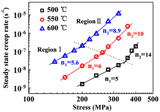 - An obvious transition in stress exponent and average activation energy was observed: At low stresses, the values were approximately 5 to 6 and 268 kJ/mol, whereas at high-stress regions, the corresponding values were 8.9–14 and 380 kJ/mol. Stress-assisted dislocation climb controlled by lattice diffusion is suggested as a possible rate-dominating mechanism at low stresses.