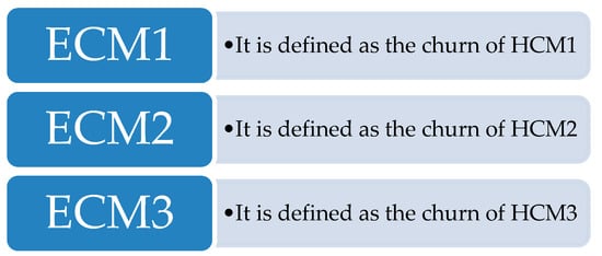 Similar to HCM, ECM has three variants, namely, ECM1, ECM2, and ECM3. The three variants of ECM are depicted in Figure 1.