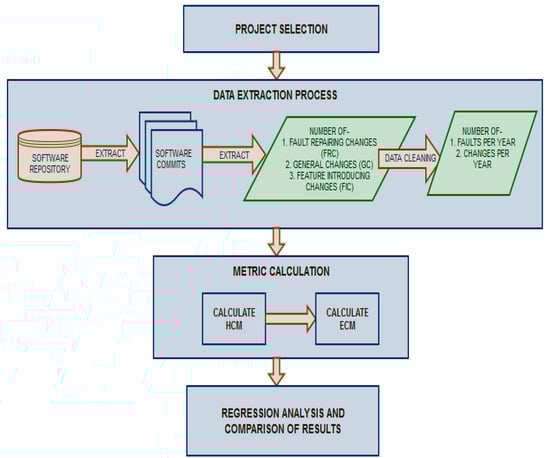 - Metric Calculation: The third step was metric calculation, which used the data collected in step two for calculating HCM and ECM. The data extraction and metric calculation processes are explained in Section 4.2.