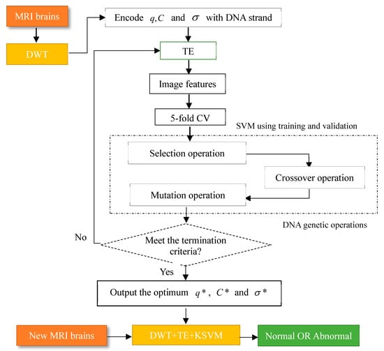 Methodology of our proposed DNAGA-TE+KSVM algorithm.