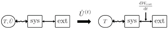 where is the free Hamiltonian of the external system. As illustrated in Figure 1, this implies that, for the change of coordinates to map the two physical situations, one is required to supply the work power