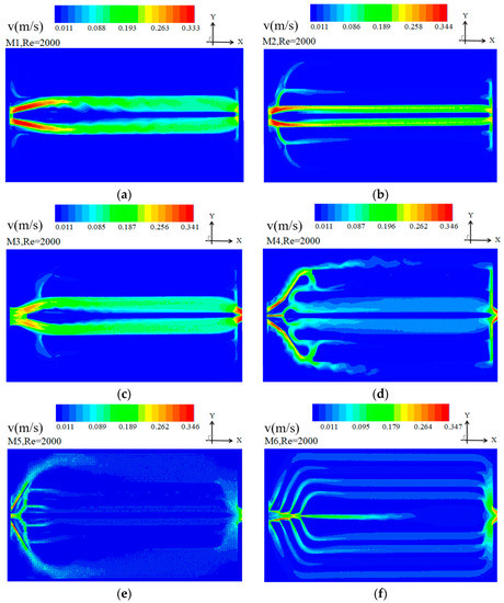 - As compared with the five models M1–M5, the velocity field of M6 is more uniformly distributed without the aid of external electronic devices.