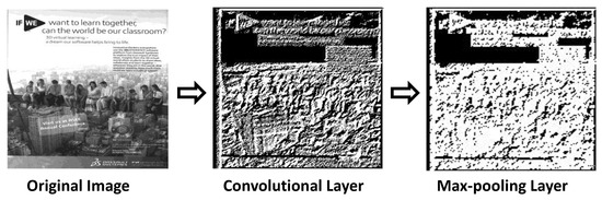 where w is the weight (the weights are initialized using random numbers), b is the bias, and h is the max-pooling output. Then, we applied the sigmoid activation function to normalize a [25]. The parameters of the convolutional neural network architecture are shown in Table 1. An example of the output is shown in Figure 3.
