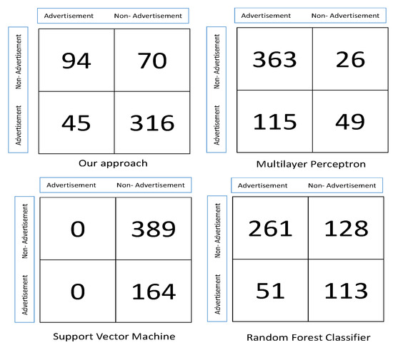 - A comparison was made with other classifiers, and it shows that our approach is feasible for detecting advertisements from a large dataset and outperforms other classifiers.
