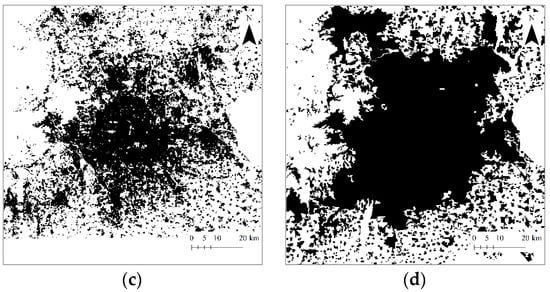 Four typical images of Beijing’s urban land-use patterns. (a) 1984; (b) 1994; (c) 2006; (d) 2015.