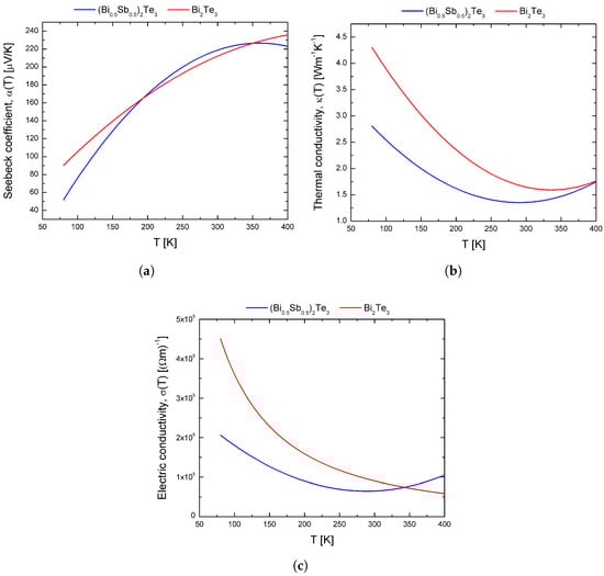Figure 2a–c shows the behavior of the properties of the materials in the temperature range of 80–400 K.