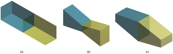 The performance of TEC devices depends on many factors, such as the temperature gradient between the hot and cold ends of the leg, the material properties and the configuration and arrangement of the thermoelectric leg materials. Among these factors, leg geometry of the micro-elements and semiconductor materials configurations for segmented legs are crucial to be able to optimize a TEMC system. Therefore, we investigated the influence of the leg cross-sectional area on the cooling power. To achieve this objective, the three different leg geometry models depicted in Figure 3, namely a rectangular prism, a trapezoidal prism with a small junction contact area and a trapezoidal prism with a large junction contact area, were analyzed to predict their steady-state TEMC performance.