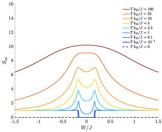 with representing the energy eigenvalue associated to the energy eigenstate . Combining Equations (6) and (7), one finds the explicit expression for the equilibrium entropy