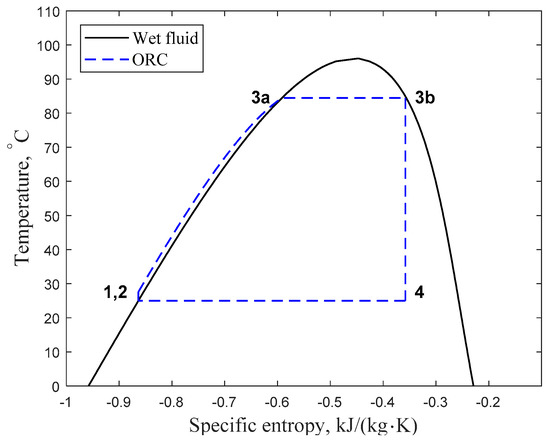 T-s (temperature vs. specific entropy) diagram, working fluids are characterized as wet, isentropic or dry with negative, zero or positive gradients, respectively [
