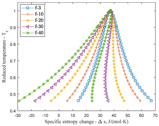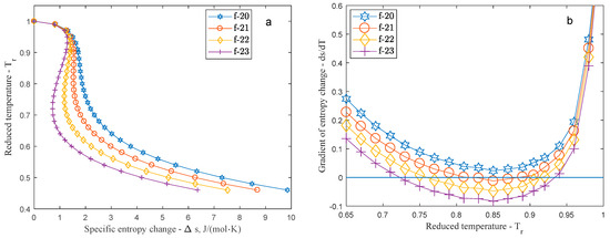 Figure 3b shows the gradient of the entropy change in the 0.65–1 reduced temperature interval. As