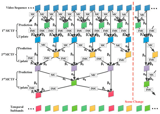 - Ohm, J.R. Three-dimensional subband coding with motion compensation. IEEE Trans. Image Process. 1994, 3, 559–571. [Google Scholar] [CrossRef] [PubMed]