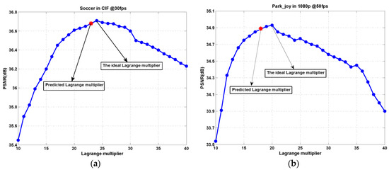 - Zhang, F.; Bull, D.R. An adaptive Lagrange multiplier determination method for rate-distortion optimization in hybrid video codecs. In Proceedings of the 2015 IEEE International Conference on Image Processing (ICIP), Quebec City, QC, Canada, 27–30 September 2015; pp. 671–675. [Google Scholar]