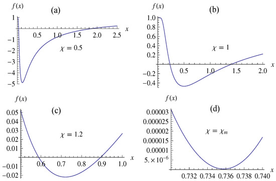 The metric function with for the four cases: (a) ; (b) , (c) , (d) .