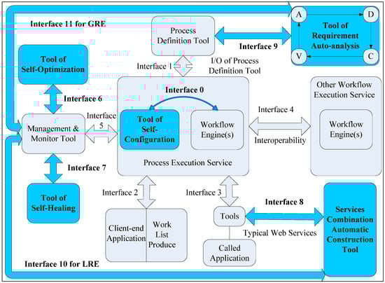 - Interface no.0 is linked to the core work engine(s) component of the WfMS and the additional self-configuration-parameter system for the WfMS (SCP4WMS) RE tool in the process execution service module; that is, we consider the SCP4WMS tools an extension of and supplementary to the process execution service module.