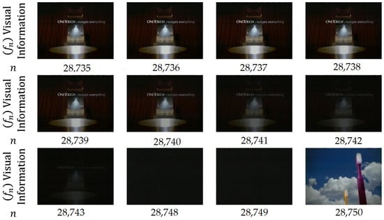In fade in, the pixel intensity values of shot gradually emerge from a fixed intensity frame. By contrast, previous shot is directly changed by the fixed intensity frame [,], as shown in Figure 8. Thus, only the frames at the end of shot are involved in fade-in transition, and no frames from shot are involved.