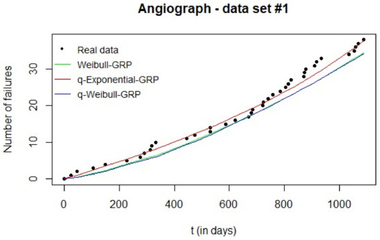In this section, the proposed q-Weibull GRP and q-Exponential GRP are applied to system failure data. Additionally, for the sake of comparison, the Weibull-GRP is also considered to model the same data sets. Specifically, two data sets are used, and they are related to: (i) an angiograph—data set #1, Section 6.1—and (ii) a thermal power plant—data set #2 [37], Section 6.2. They are related to different complex systems (equipment vs. plant) of different contexts (medical vs. electrical power grid), which suggests the flexibility of the proposed models in handling data from a wide range of practical applications.
