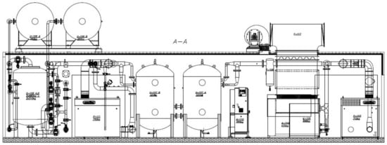 The air, which is taken from the environment through an air inlet sampling probe with a filter, is compressed in a Root’s blower to a pressure of 150 ÷ 180 kPa abs. The air is then cooled in a cooler supplied with water from the circulation of the chiller aggregate to a temperature of 25 ÷ 30 °C. A water condensate separated from the air is separated in the separator. The air flows to buffer tanks where it is temporarily stored.