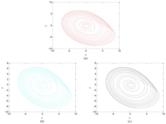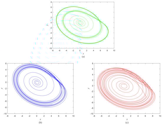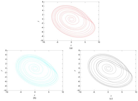 Attractors of different systems. (a) The second hybrid system; (b) The first hybrid system; (c) The control system.