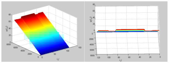 where (j, k) stands for the oscillator in the j-th row and k-th column of the two-dimensional topology, j ∈ [1, M], k ∈ [1, N]; M, N is the size of the input image; and are the positive and negative coupling strength; and are the active control functions of the second layer (response system). The details of the control functions can be seen in Appendix A. The positive and negative coupling terms are and , with