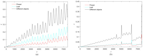Phase standard deviation for objects in Figure 18 over time. (a) Our proposed model; (b) The segmentation model in [].