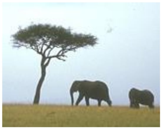 We also selected the images from the BSDS500 (Berkley Segmentation Data Set) [] to test the performance of the proposed model. The results for Figure 28 and Figure 29 are shown in Figure 30 and Figure 31. The central unit has 4, 3 times transitioning to synchronize with the “attention object” during the control time in Figure 30 and Figure 31. We also calculate the mean entropy of the segmented object. For Figure 28, the mean entropies obtained by our model and the model in [] are 4.3606 and 4.39965, respectively. For Figure 29, the mean entropies obtained by the mentioned models are 5.1878 and 5.2262, respectively. For the two images, the mean entropy of segmented objects obtained by our model are small. This means that the performance of our proposed model is better than that of the model in [] for image segmentation.