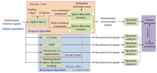 More importantly, due to the periodic impulses caused by the localized fault in rotating machines, usually considered as the low-resonance component (LRC), which are key information for condition monitoring of rotating machines and hidden in natural modulated components and additive background noise [23,24,25,26,27], if the SBL method recovers the raw data without any preprocessing, the LRC may distortion and alias with high-resonance components, resulting in the loss of the fault characteristic frequencies. Unfortunately, the conventional SBL approaches treat all vibration signal amplitudes equally, thus, ignore a fact that the LRC may contain more useful information of periodical impulses and should be preserved with a larger coefficient. When the LRC are reconstructed failure, which would lead to the misdiagnosis in the terminal.