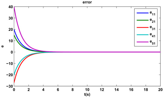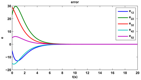 The time evolutions of tracking errors are depicted in Figure 5, Figure 6 and Figure 7, we can get that the tracking errors converge to zero asymptotically.
