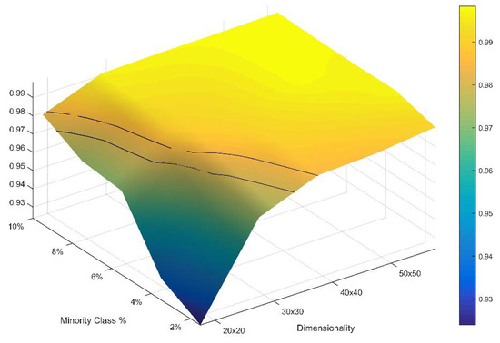 Investigation of the boundary limits of landscape extent and proportionality for the normal approximation. Five levels of landscape dimensionality and five levels of landscape proportion of a minority class in a two-class landscape were investigated.