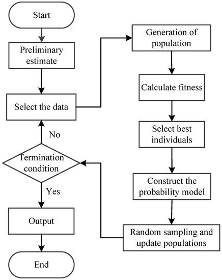 Finally, we take the error entropy as the fitness value, when the error entropy reaches the minimum while the parameter reaches the optimum. The improved EDA algorithm is summarized as follows.