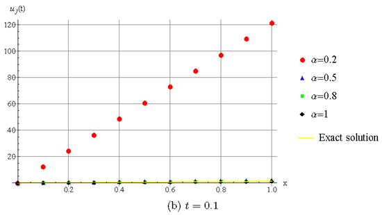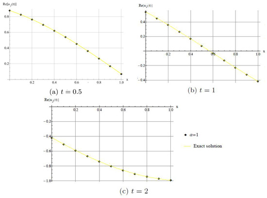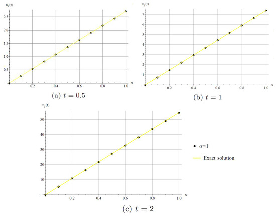 In Figure 2, we show that the method has good agreement with the exact solution when .