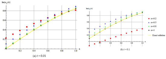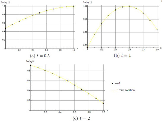 In Figure 5, we show that the method has good agreement with imaginary part of the exact solution when .