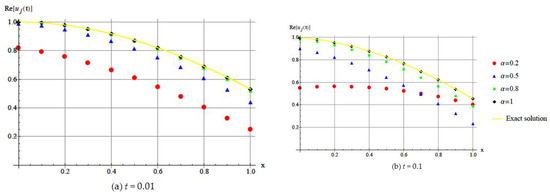 In Figure 6, we show that the method has good agreement with real part of the exact solution when .