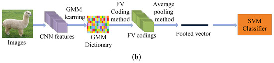 (a) The traditional feature coding framework; (b) The block diagram of the FV-CNN [39].